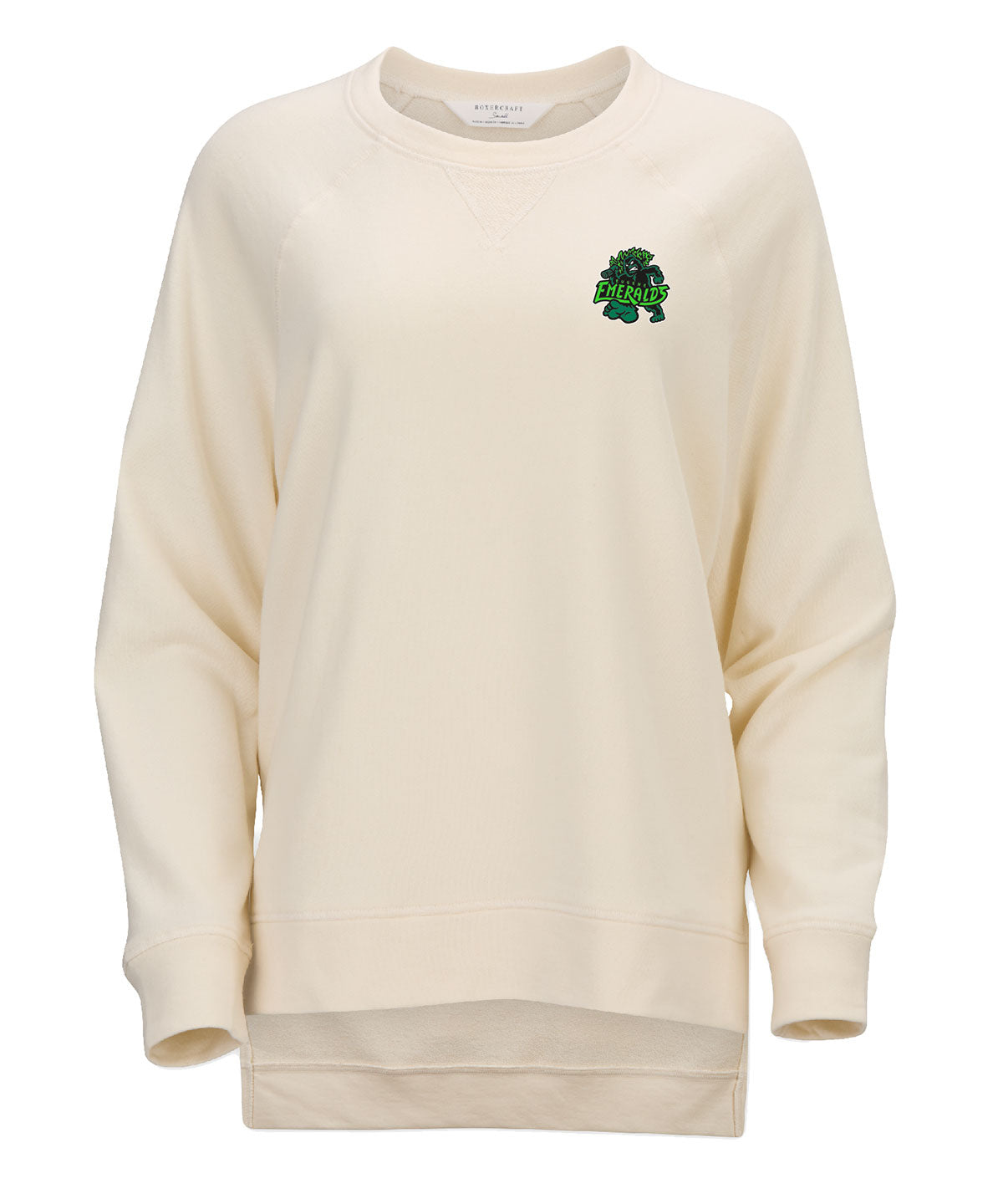 Oversized, with raglan sleeves, this terry crewneck pullover was made for comfort. Plenty of room for layering, but just as cute on its own with the hi/low hem. Ribbed cuffs and waistband ensure it holds its shape wear after wear.