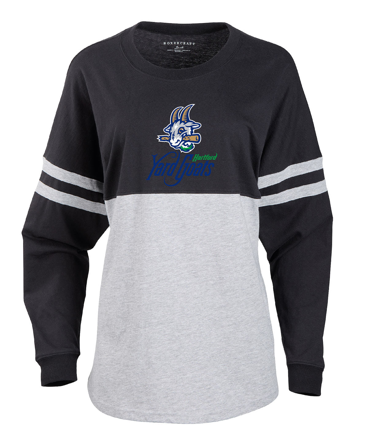 Give a loud cheer for your new favorite jersey. With double stripes on sleeves for athletic style, and a roomy, oversized fit for extra comfort, this all-cotton jersey is a winning look, layered or not. Rib knit at cuffs and crewneck. Lift up your team spirit in our long-sleeve Pom Pom Jersey.