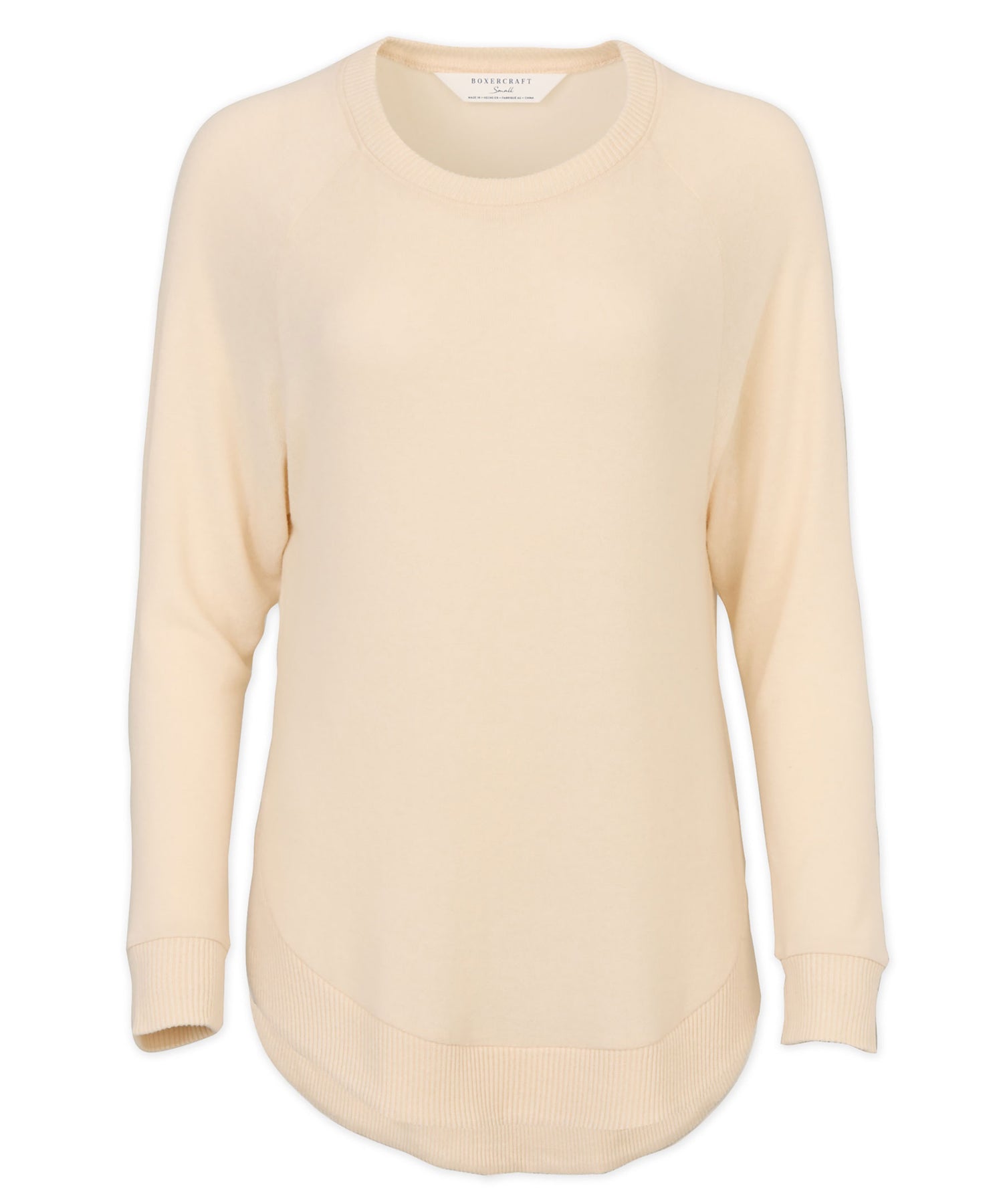 There's comfort, and then there's oversized cuddle comfort. This oversized crew will take it to a new level with raglan sleeves and split side seams. The rounded hem design is super cute, and the ribbed collar, cuffs and waistband add texture and help hold the shape wash after wash.