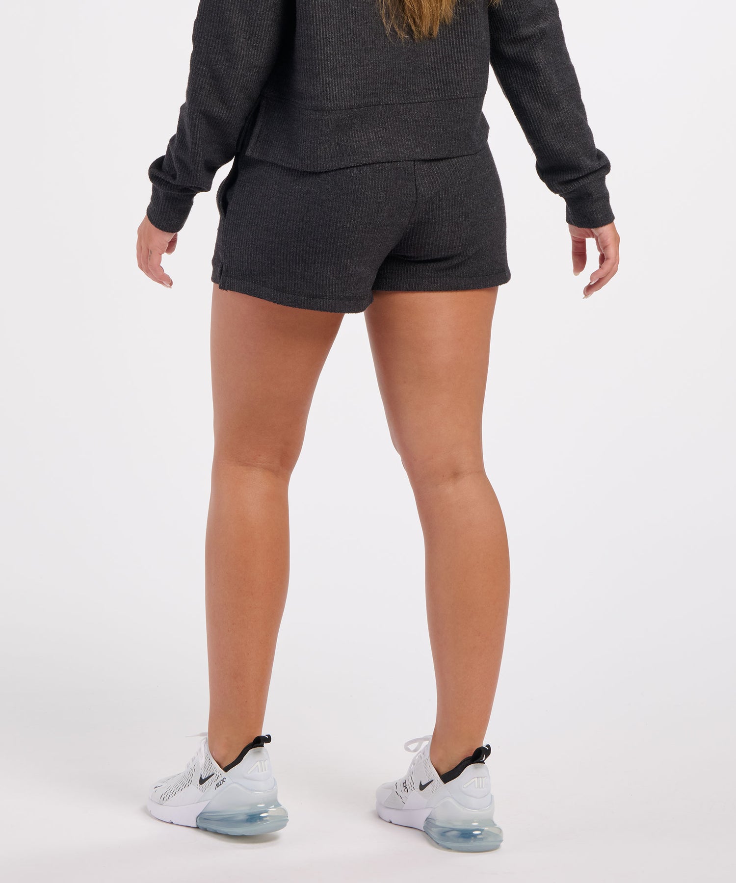 The easy, comfy shorts you want to wear the moment you get home—but cuter. They’re made from soft ribbed knit with classic details like a high rise, side pockets, and a hidden internal drawstring. Fit wise, they’re laid-back, loose, and hang off the body just right. For a luxe leisure look you can count on, pair them with the matching boxy cropped crew to complete the relaxed cool-girl charisma look.