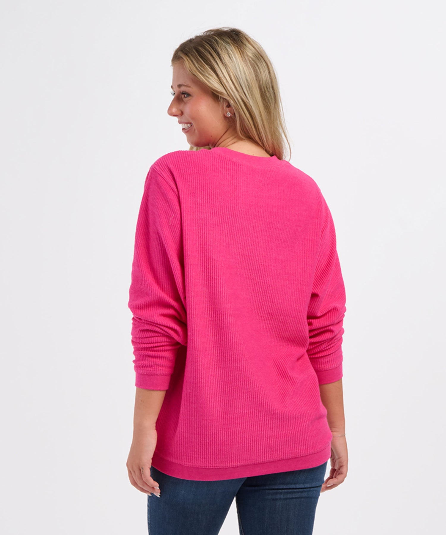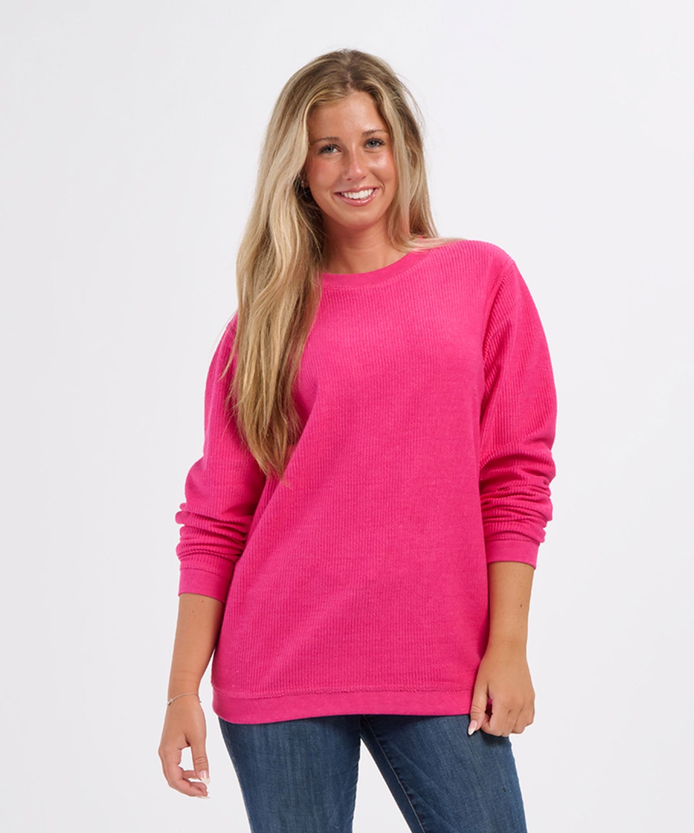 It's time to Rally. We're talking about a corduroy knit pullover with lived-in softness from day one. With a special enzyme and stone wash process, our essential solid crew rivals any vintage sweatshirt. Holds shape wash after wash with rib knitting at neck, cuffs and bottom band.