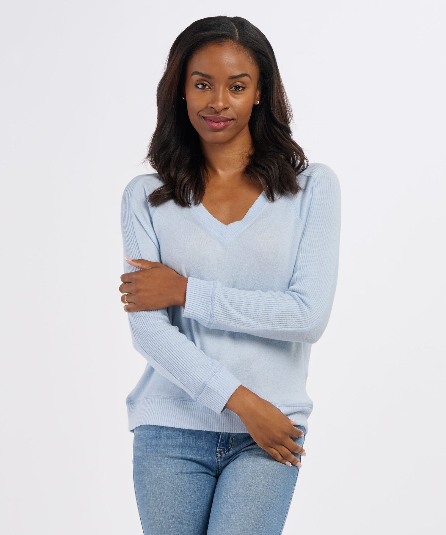 Perfect your cozy vibe in the Cuddle V-neck. Designed with a rib knit sleeve panels and a next-level-soft, smooth feel, this closet staple has a relaxed fit with a modest v-neckline. Pair it with your favorite bottom or—better yet—the matching Cuddle Soft Pant.