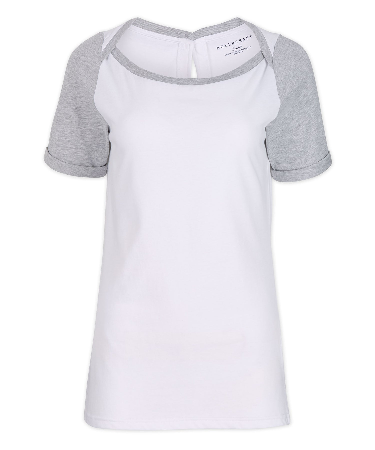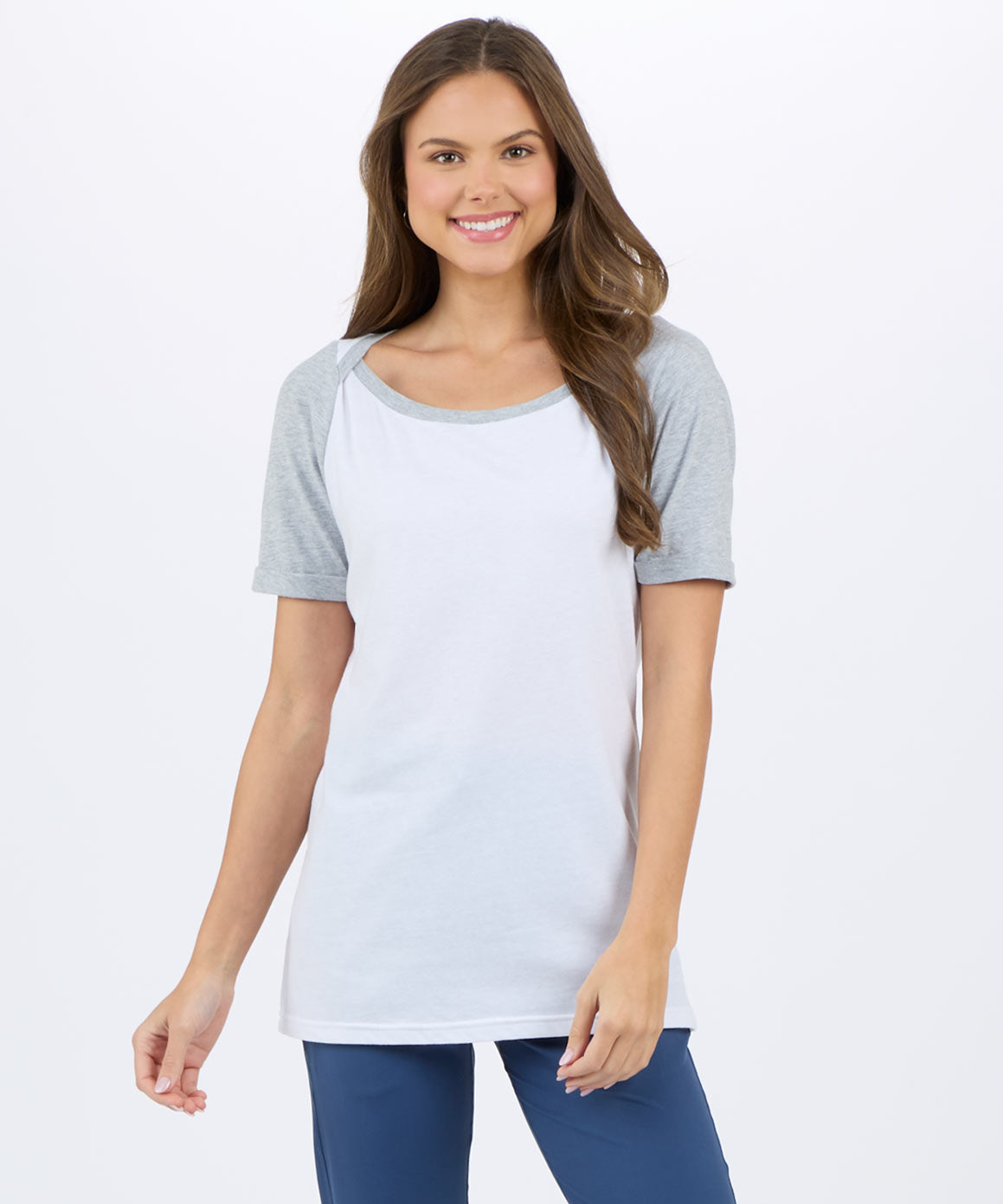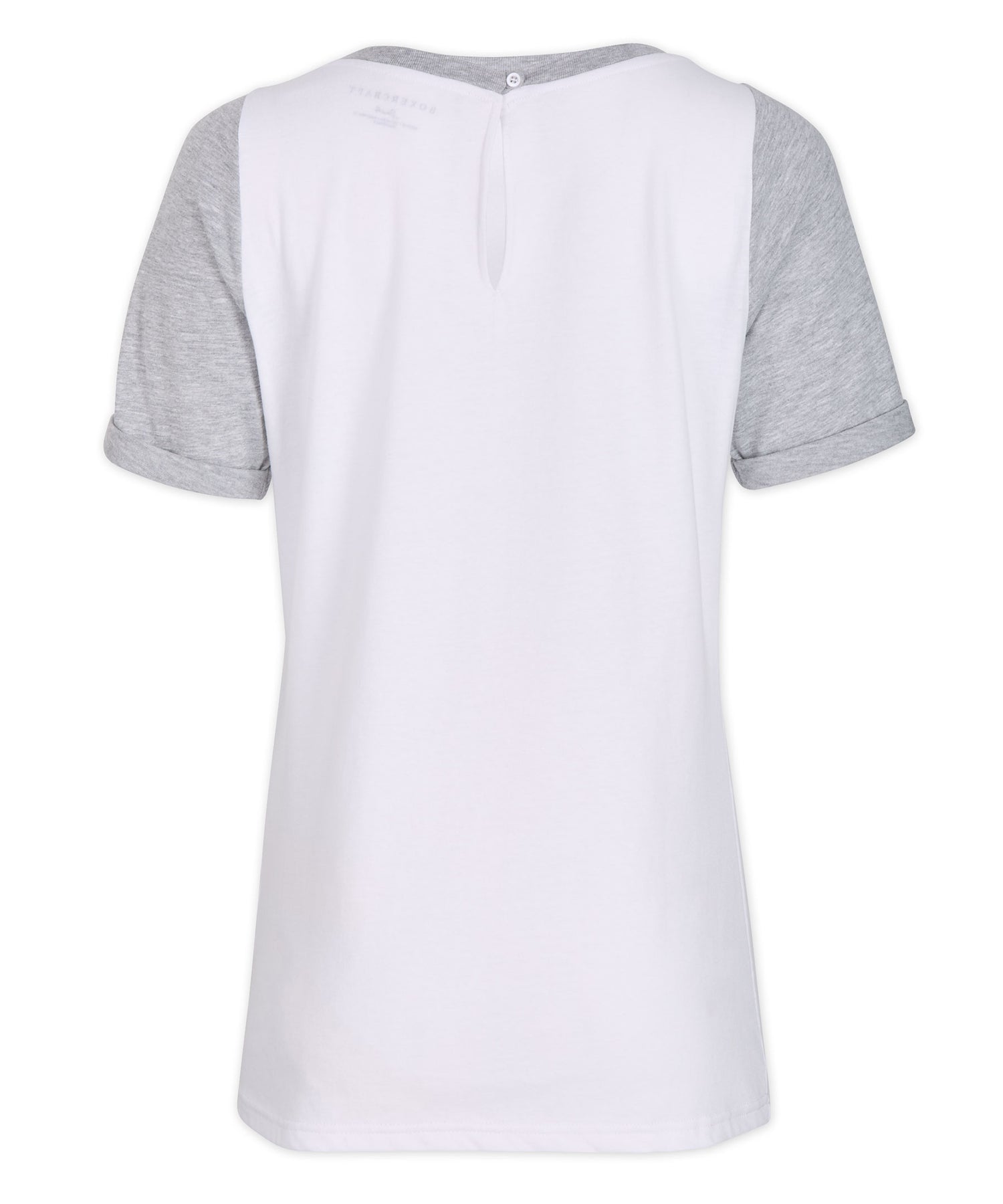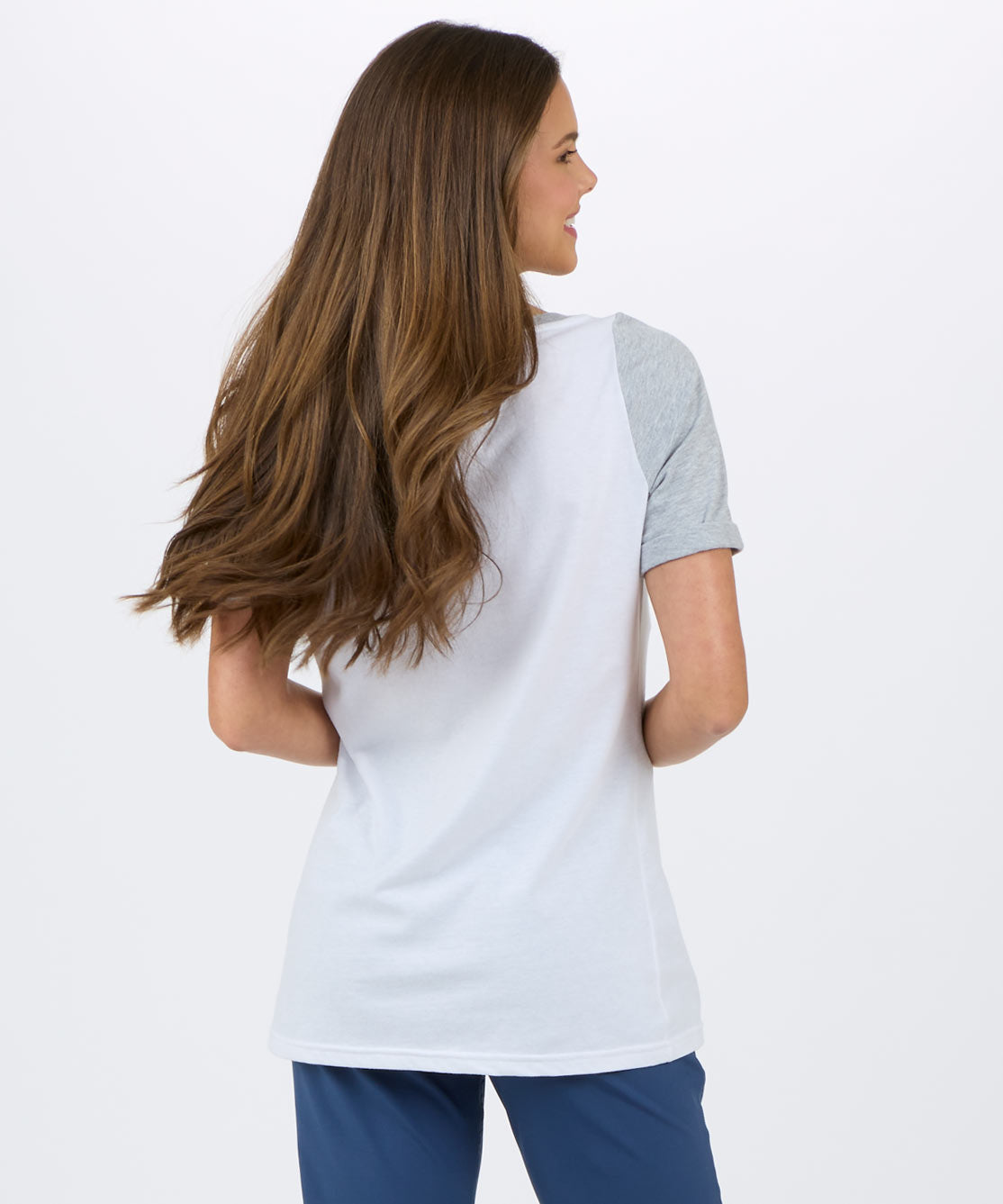 Cute, casual, and oh-so comfy, our Carefree Tee will be one you reach for when working out or simply hanging out. Soft cotton-poly double brushed jersey has a relaxed fit that's extremely versatile. Lapped shoulder seams and a keyhole back opening add athletic appeal. Turnbacks at the sleeve and bottom openings add an extra degree of polish to the tee.