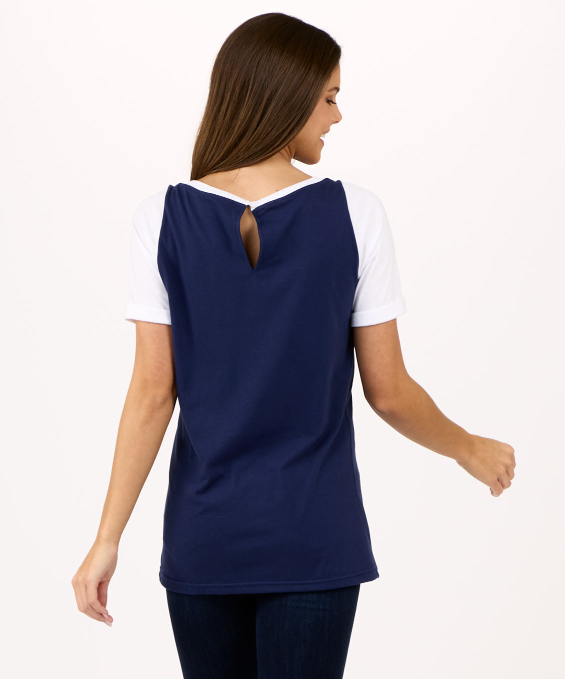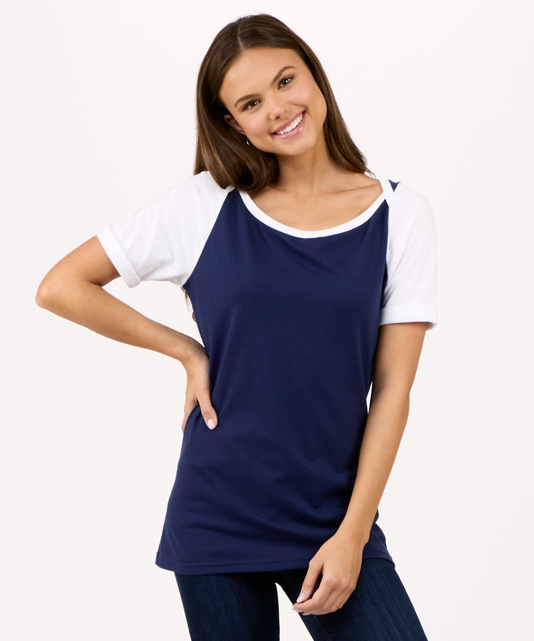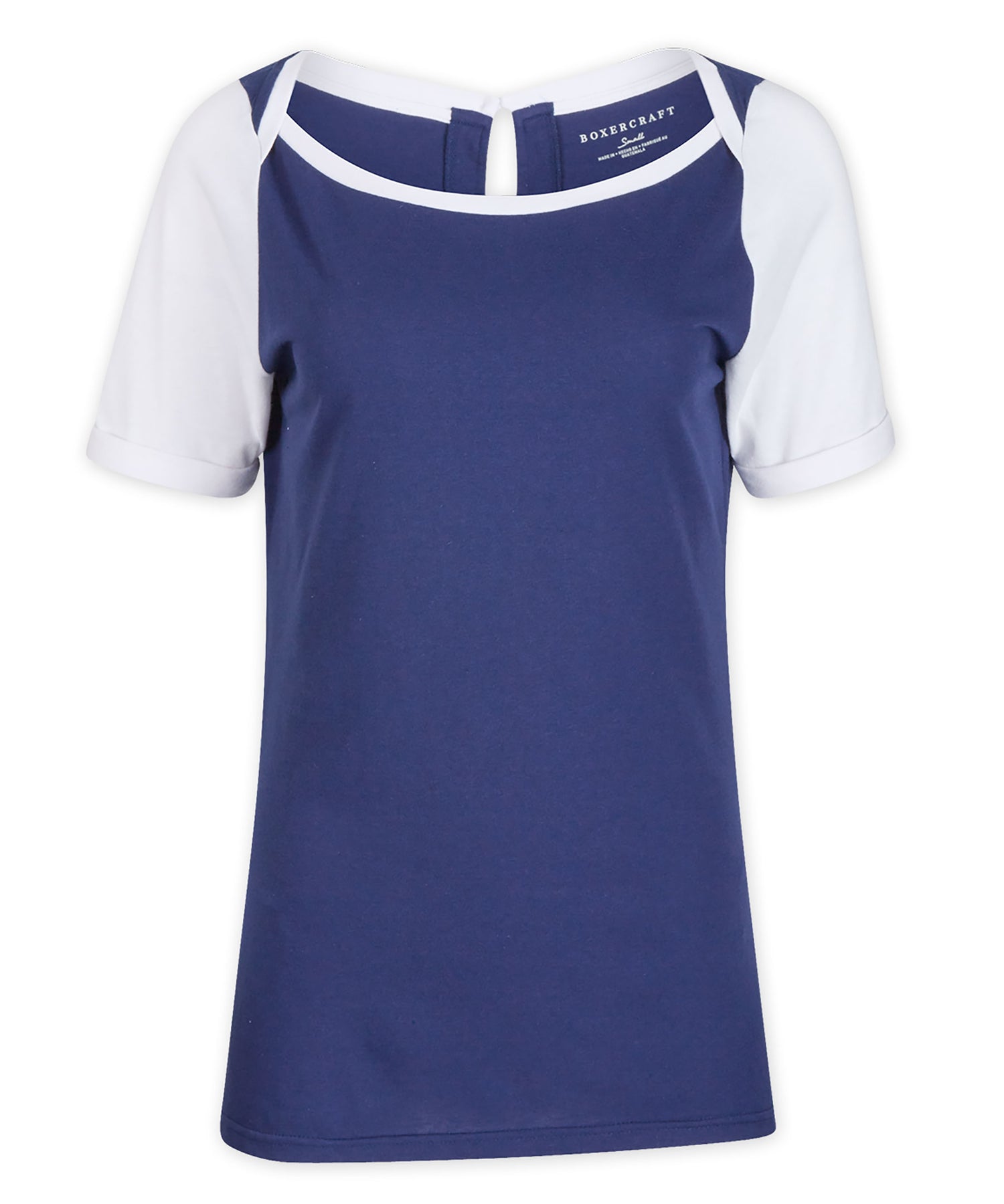 Cute, casual, and oh-so comfy, our Carefree Tee will be one you reach for when working out or simply hanging out. Soft cotton-poly double brushed jersey has a relaxed fit that's extremely versatile. Lapped shoulder seams and a keyhole back opening add athletic appeal. Turnbacks at the sleeve and bottom openings add an extra degree of polish to the tee.