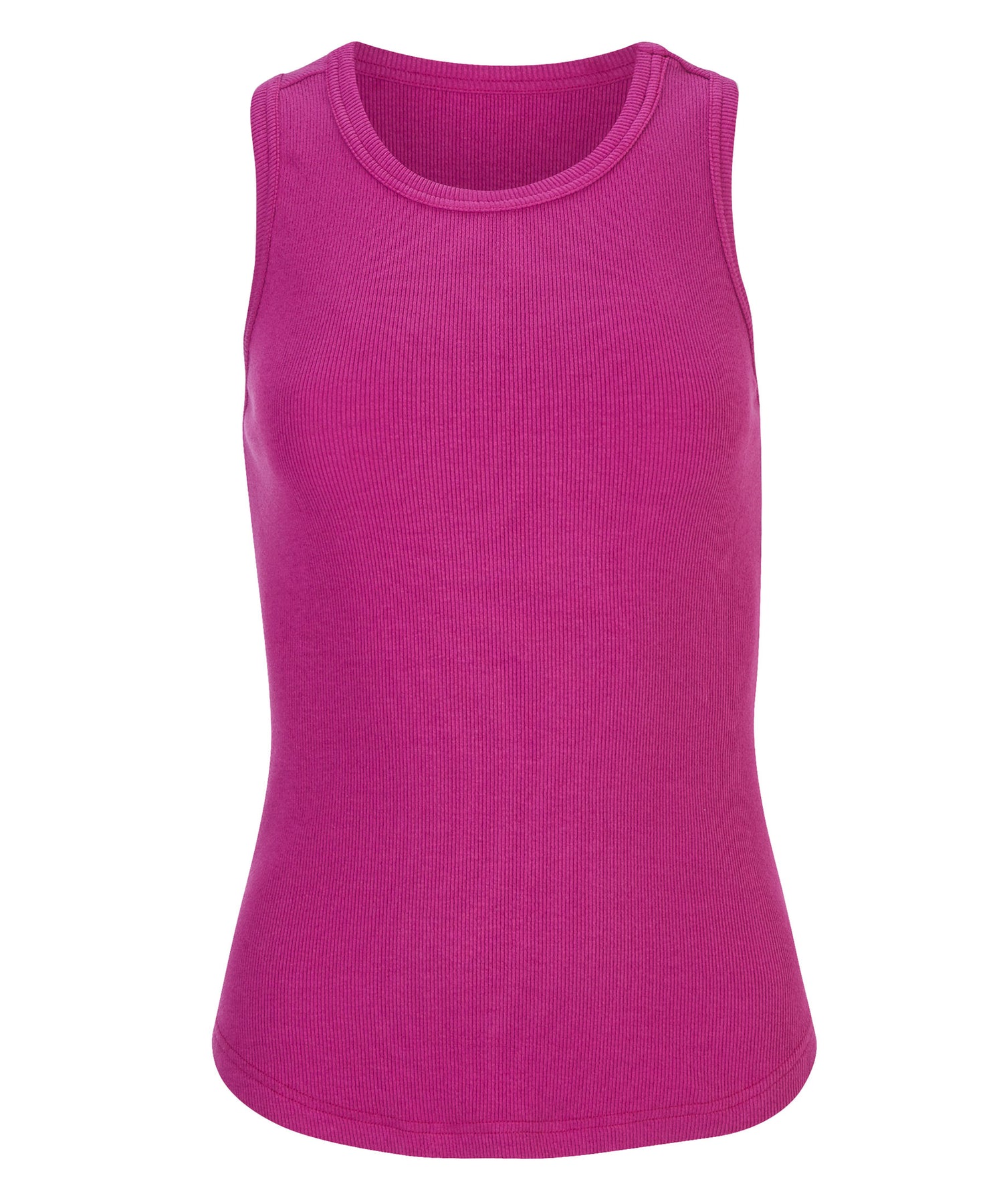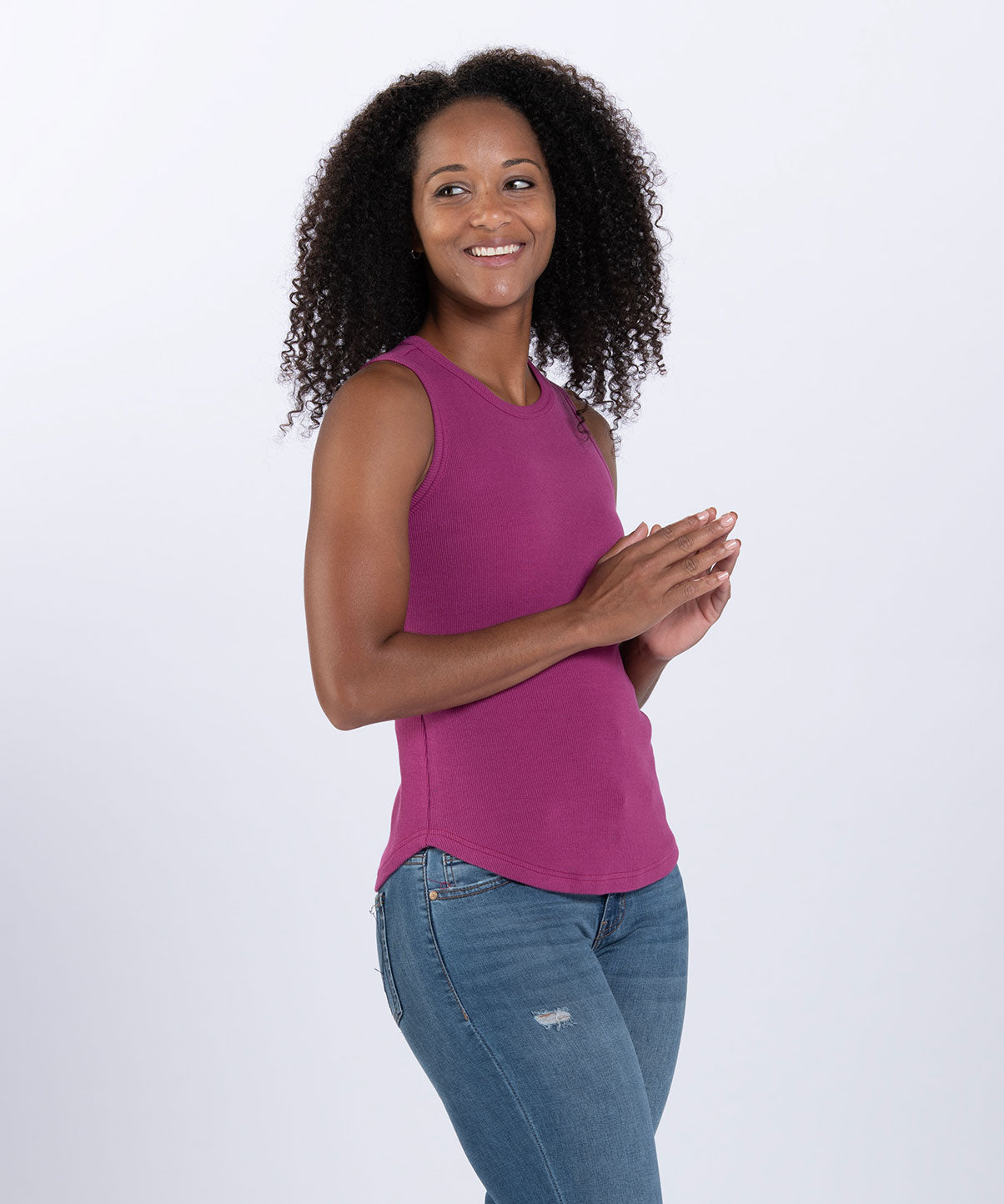 Designed with workouts in mind, the Adrienne Tank helps you keep your cool while working up a sweat. The cotton-spandex fabric is breathable, with enough stretch to move with you. Features racerback styling and a shirttail hem for maximum comfort however you choose to move.