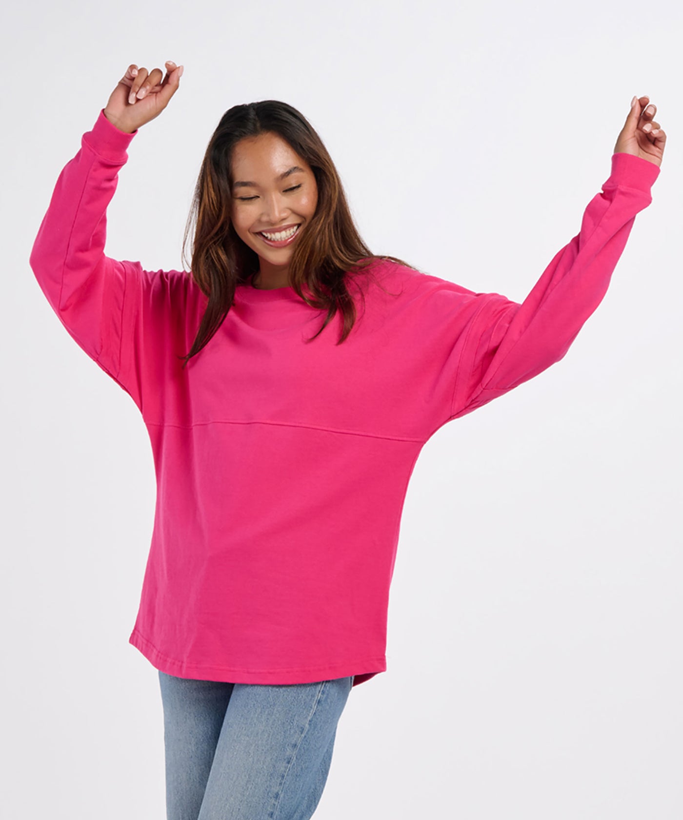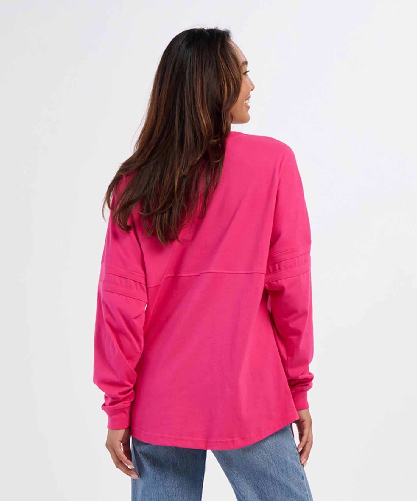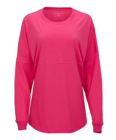 Give a loud cheer for your new favorite jersey. With double stripes on sleeves for athletic style, and a roomy, oversized fit for extra comfort, this all-cotton jersey is a winning look, layered or not. Rib knit at cuffs and crewneck. Lift up your team spirit in our long-sleeve Pom Pom Jersey.
