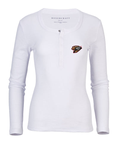 With the Harper Henley, we’ve taken a classic style and updated it with feminine appeal. Pure cotton softness has a shot of spandex for stretchable, easy comfort. Twill back neck tape and twill tape on the placket are a casual accent, while matching snaps are just the thing to set this shirt apart.