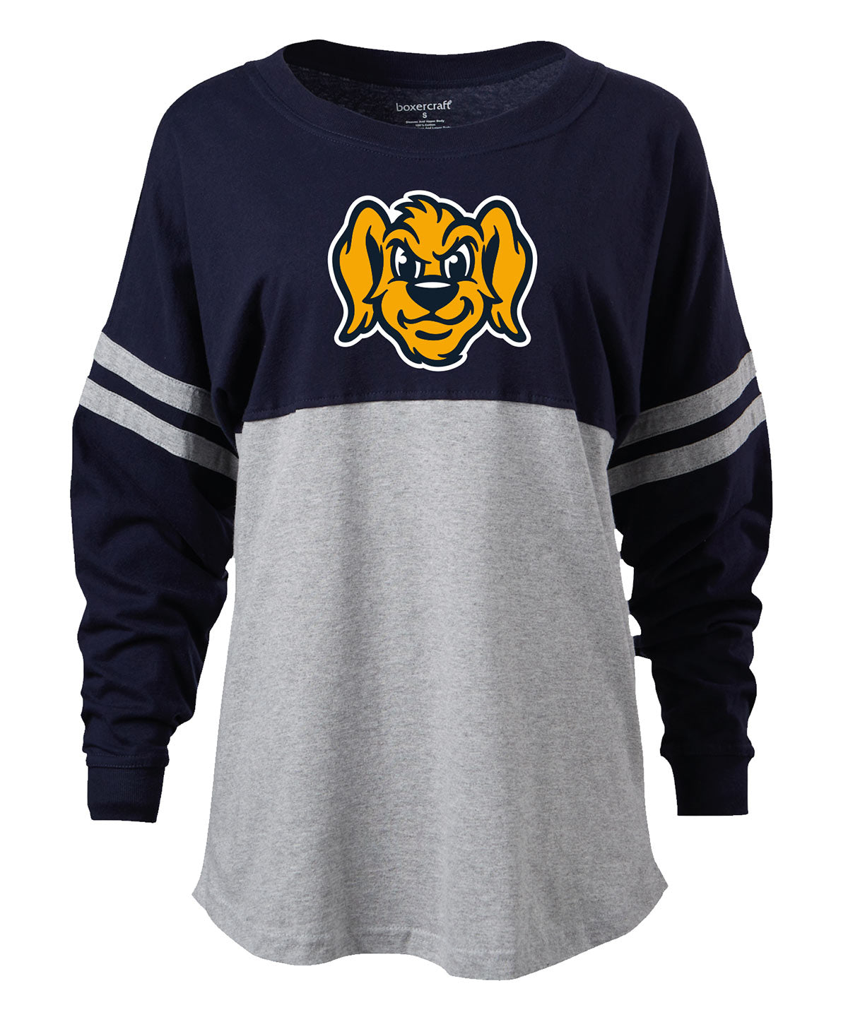 Give a loud cheer for your new favorite jersey. With double stripes on sleeves for athletic style, and a roomy, oversized fit for extra comfort, this all-cotton jersey is a winning look, layered or not. Rib knit at cuffs and crewneck. Lift up your team spirit in our long-sleeve Pom Pom Jersey.